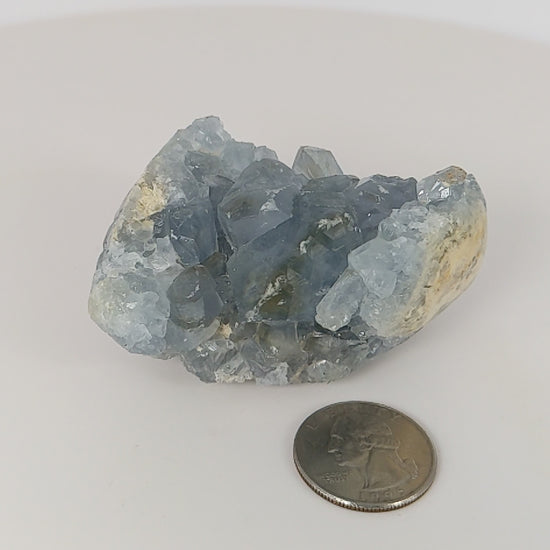 Beautiful blue celestite cluster! Approximately 67 mm x 38 mm x 35 mm and 222 grams.