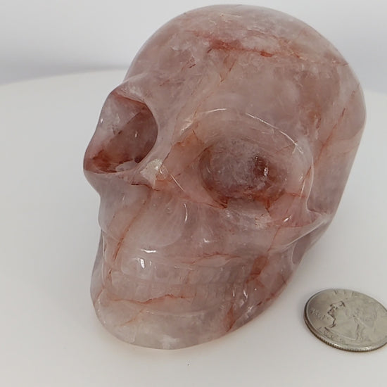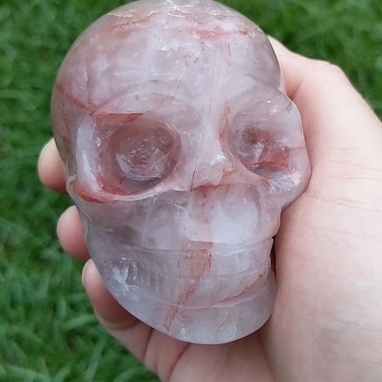 AMAZING hematoid (fire) quartz skull! A real handful at approximately 100 mm front to back and 746 grams. Lovely red streaks throughout!