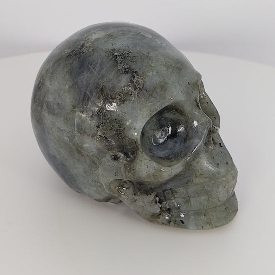 Nice lab skull with blue flash on one side. Measures approximately 86 mm from front to back and weighs approximately 539 grams.